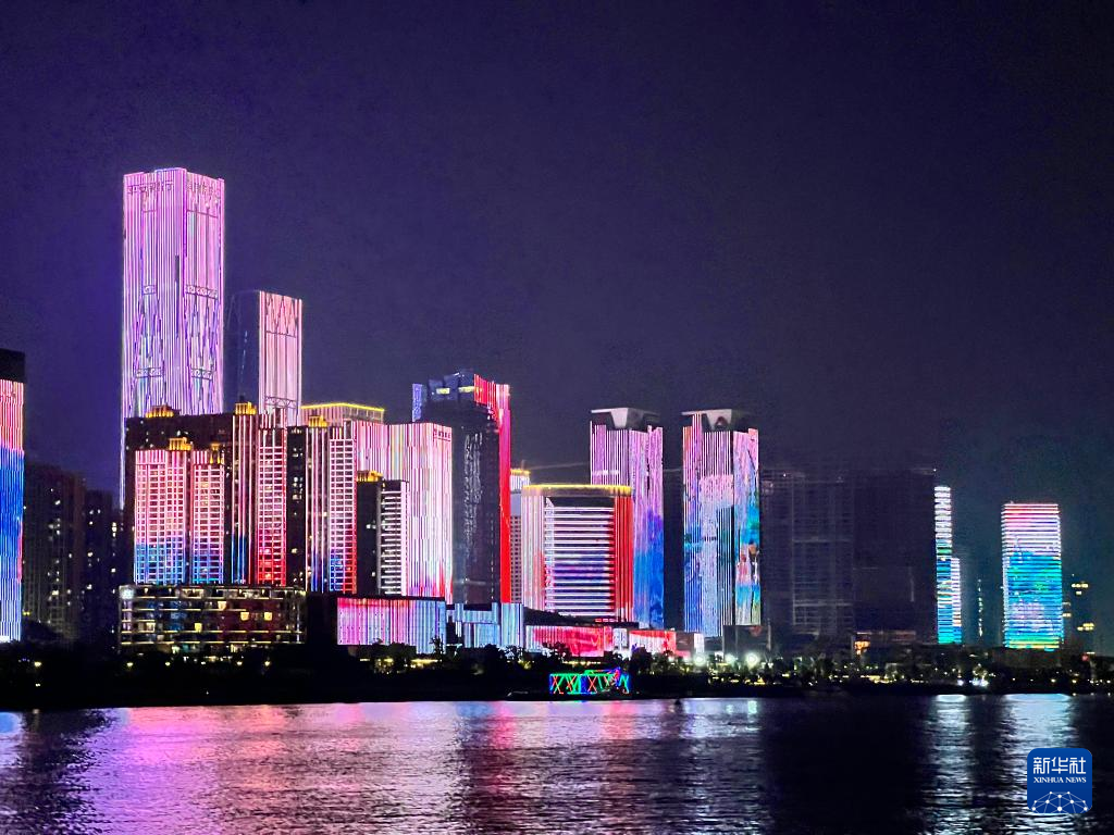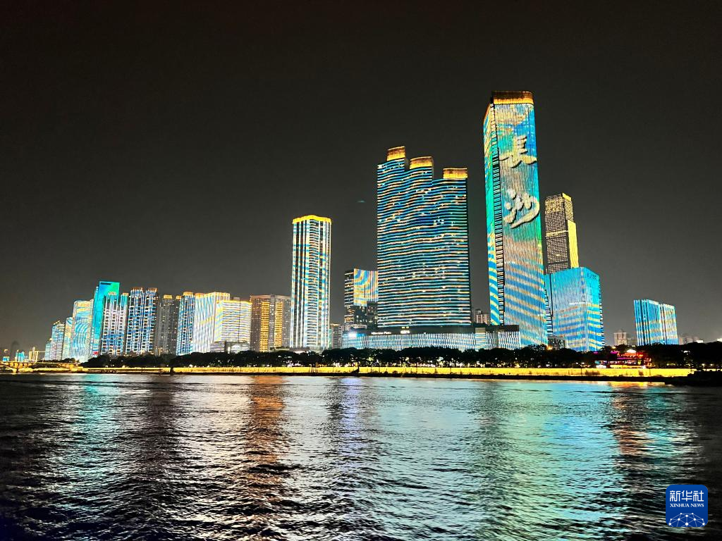 1日、湘江のほとりに広がる夜景。(長沙=新華社記者/薛臣)