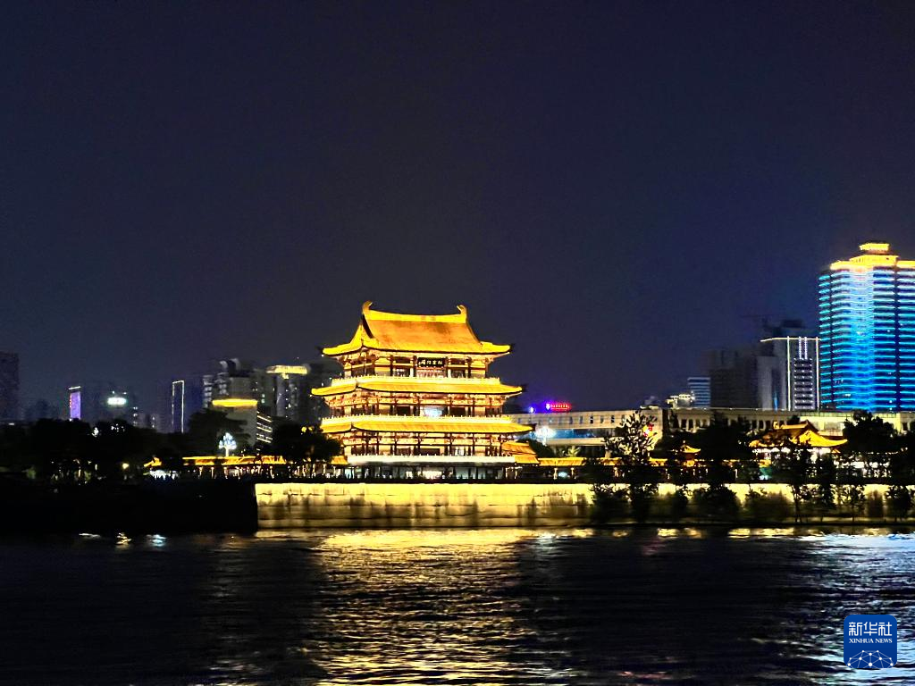 【新華社長沙7月7日】中国湖南省の母なる河、湘江は長江の主要な支流でもある。長沙市では夜になると、観光客らが船に乗って両岸のライトショーを楽しんでいる。 記事出処:新華社