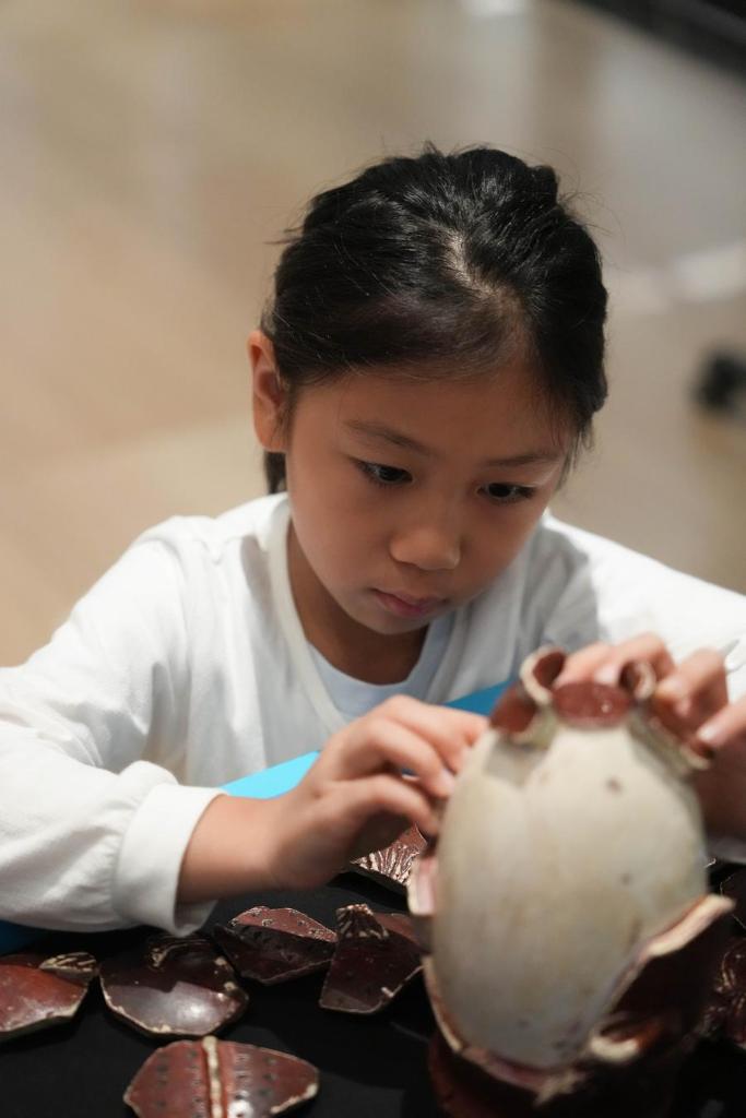 4日、長沙博物館の子ども向けミニ展覧会で、文化財修復を体験する子ども。(長沙=新華社記者/薛宇舸)