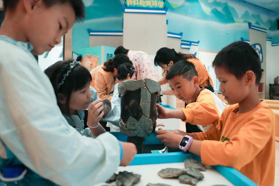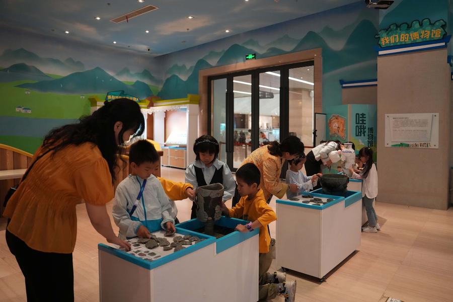4日、長沙博物館の子ども向けミニ展覧会で、文化財について学ぶ子どもたち。(長沙=新華社記者/薛宇舸)