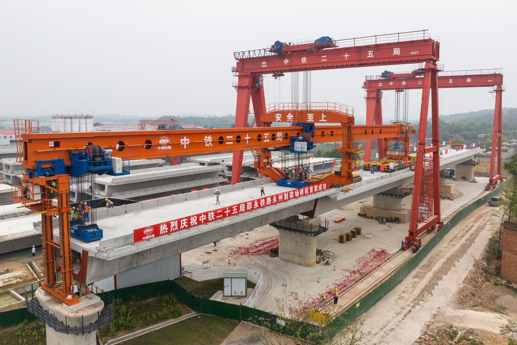 邵永高速鉄道は全長約96キロ、設計速度は時速350キロ。縦横各8ルートから成る高速鉄道網「八縦八横」のうち、内モンゴル自治区フフホト-広西チワン族自治区南寧線を構成する重要部分で、北は婁底-邵陽鉄道、南は衡陽-柳州鉄道と接続する。