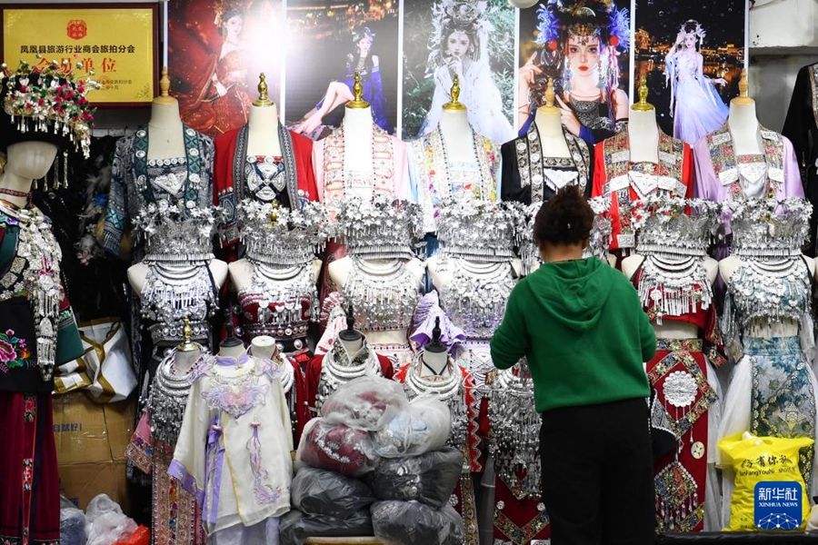 湖南省湘西土家(トゥチャ)族苗(ミャオ)族自治州鳳凰県にある鳳凰古城は、沱江が古城を貫くように流れ、古い建築物や特色ある民家が数多く残る美しい街だ。ここ数年は観光市場が規範化され続け、写真撮影旅行などの観光サービスを発展させてきた。観光客は現地の民族衣装を着て沱江の両岸を散策したり、古い街並みの美しい景色を眺めたり、現地の民俗的情緒を楽しんだりしている。新華網が伝えた。