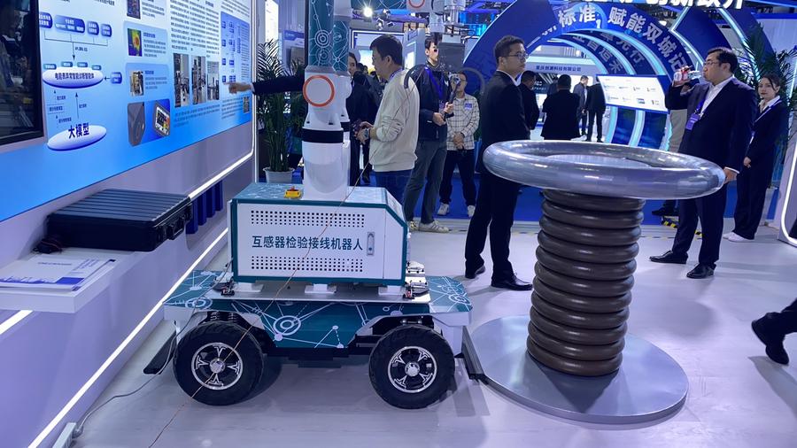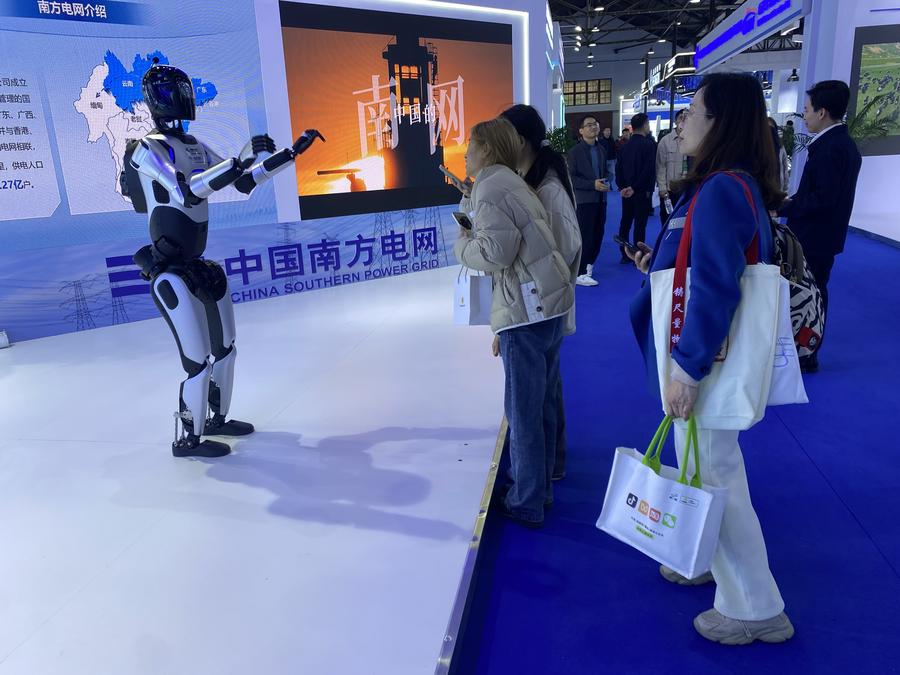 11日、送電大手の中国南方電網のブースで、命令の実行を実演するロボット。(衡陽=新華社記者/明星)