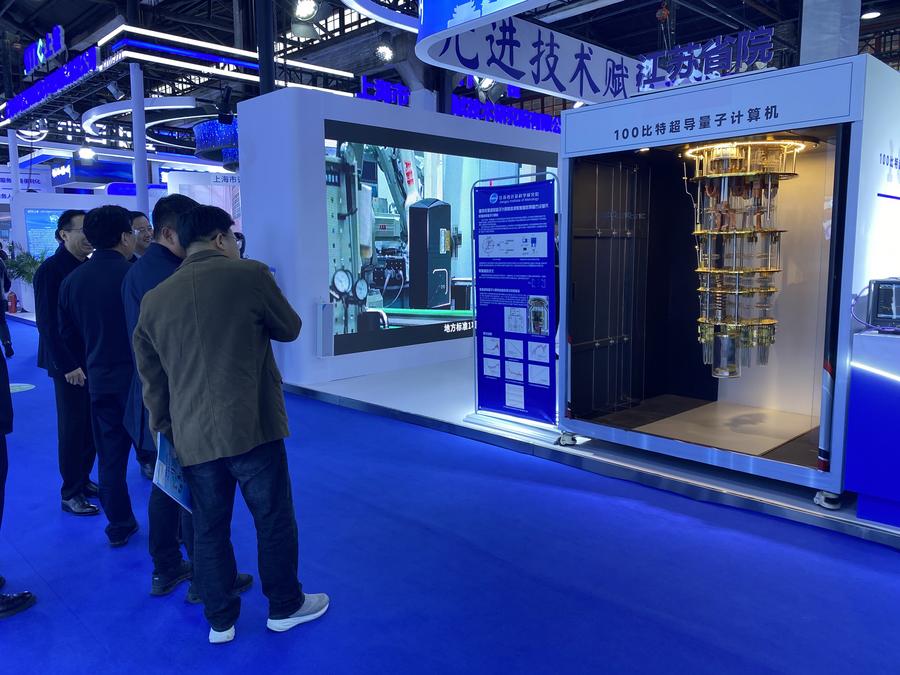 11日、展示会の目玉となった100ビット超伝導量子コンピューター。(衡陽=新華社記者/明星)