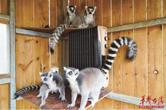 ワオキツネザルの小さな木造ハウスにはパネルヒーターが備え付けられている。 徐行 撮影