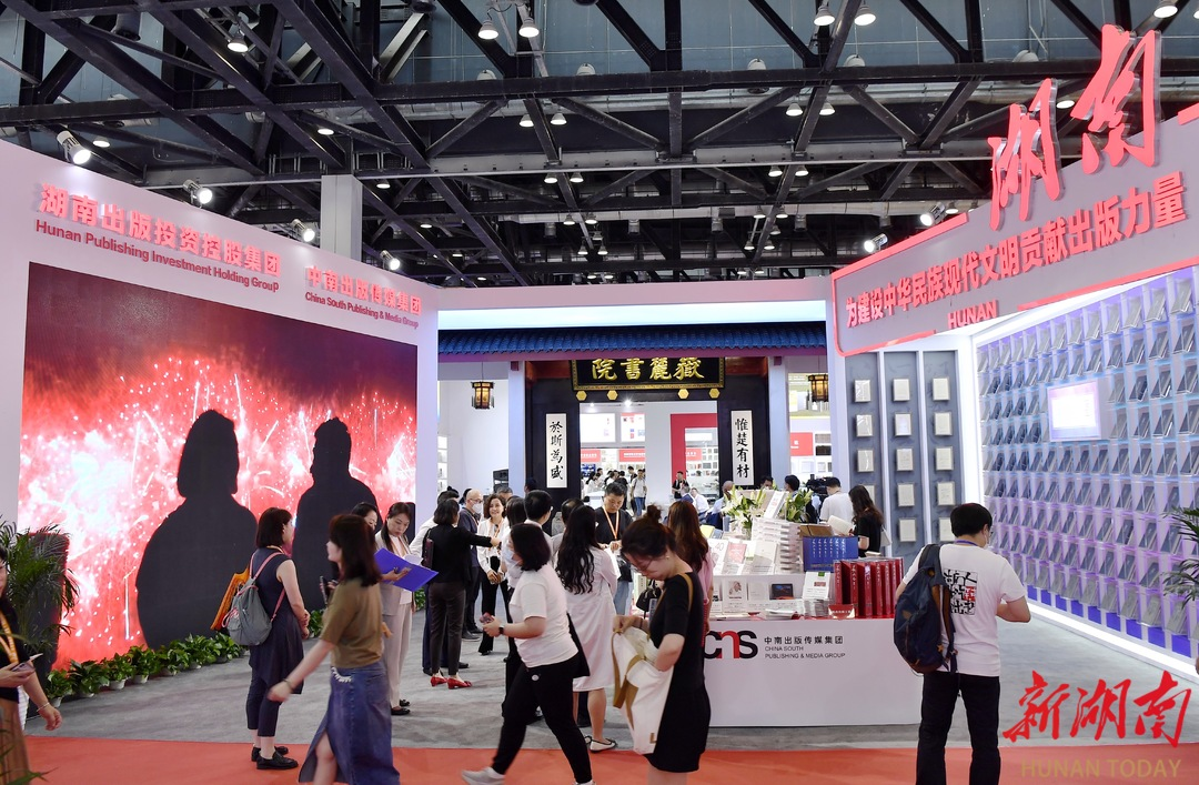 第29回北京国際図書博覧会が6月15日午前、北京国家会議センターで開幕した。湖南出版集団、中南伝媒が3000種類の逸品図書を持って出展し、湖南出版社14社がグループを組んで出展した。伝統的な出版と新興出版の融合発展を強調する今回の博覧会の要求に基づき、湖南省ブースでは科学技術の要素を十分に取り入れ、時代感を強め、湖南省のランドマークである岳麓書院を復元し、湖南省ブースのメインイメージとした。 童迪 撮影
