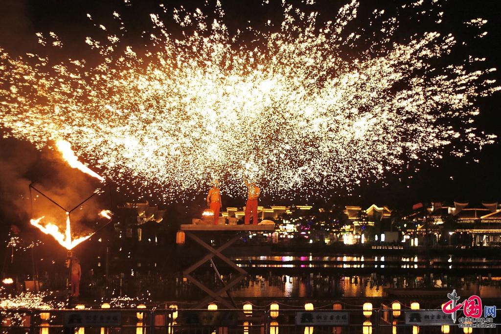 長沙市の銅官窯古鎮で18日、国家級無形文化遺産である民間の伝統的な花火ショー「打鉄花」が披露された。出演者が1000度の高温の鉄を高く打ち上げると、高さ十数メートルの花火が空に広がった。 「中国網日本語版(チャイナネット)」2023年6月19日