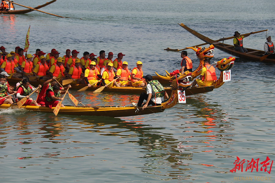 6月15日、瀟水河道県城区で、ドラゴンボートレースが行われている。端午の節句に控え、同県の大衆は173隻の龍船進水祭祀、巡龍船、遊龍船、ドラゴンボートレースなどの一連の民俗行事を自発的に開催して端午の節句を迎える。周鳳連 撮影 記事出処: 新湖南