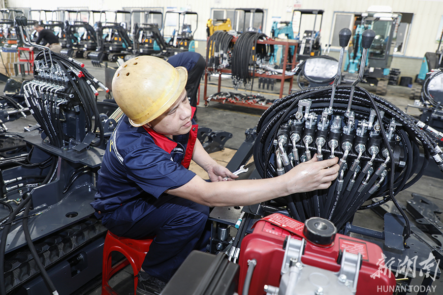 4月12日、新田県産業開発区で、作業員が小型掘削機を点検していた。近年、同企業は科学技術革新と製品の研究開発に力を入れ、生産した各タイプの小型掘削機は、市場で人気を...