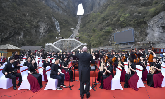 4月12日、湖南省張家界市天門洞の麓でコンサートが上演された。湖南省民族楽団と張家界フィルハーモニー管弦楽団の芸術家らが定番曲を演奏し、多くの観光客が足を止めて耳を...