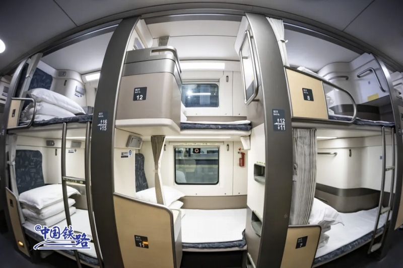 同列車は9号車が食堂車となっているほかは、全てが寝台列車で、定員は880人。一般的な寝台列車と比べて、ベッドが30%以上多く設置されている。また平行配置されていることで、車両は広々としていて、各ベッドに独立した車窓があり、外から見ると、2階建車両のように見える。全てのベッドに、遮光カーテンが設置され、マグネット付きのカーテンは寝台スペースの両側の壁にぴったりくっつけることで、「個室」になるように設計されている。夜に出発する列車に乗る旅客はベッドでゆっくり休み、朝になると目的地で新しい1日の活動を始めることができるため、ネットユーザーは「移動するホテル」と呼んでいる。
