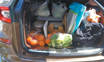 「両親の愛」が詰まった土産の数々が満載されたトランク(撮影・潘凱強)。