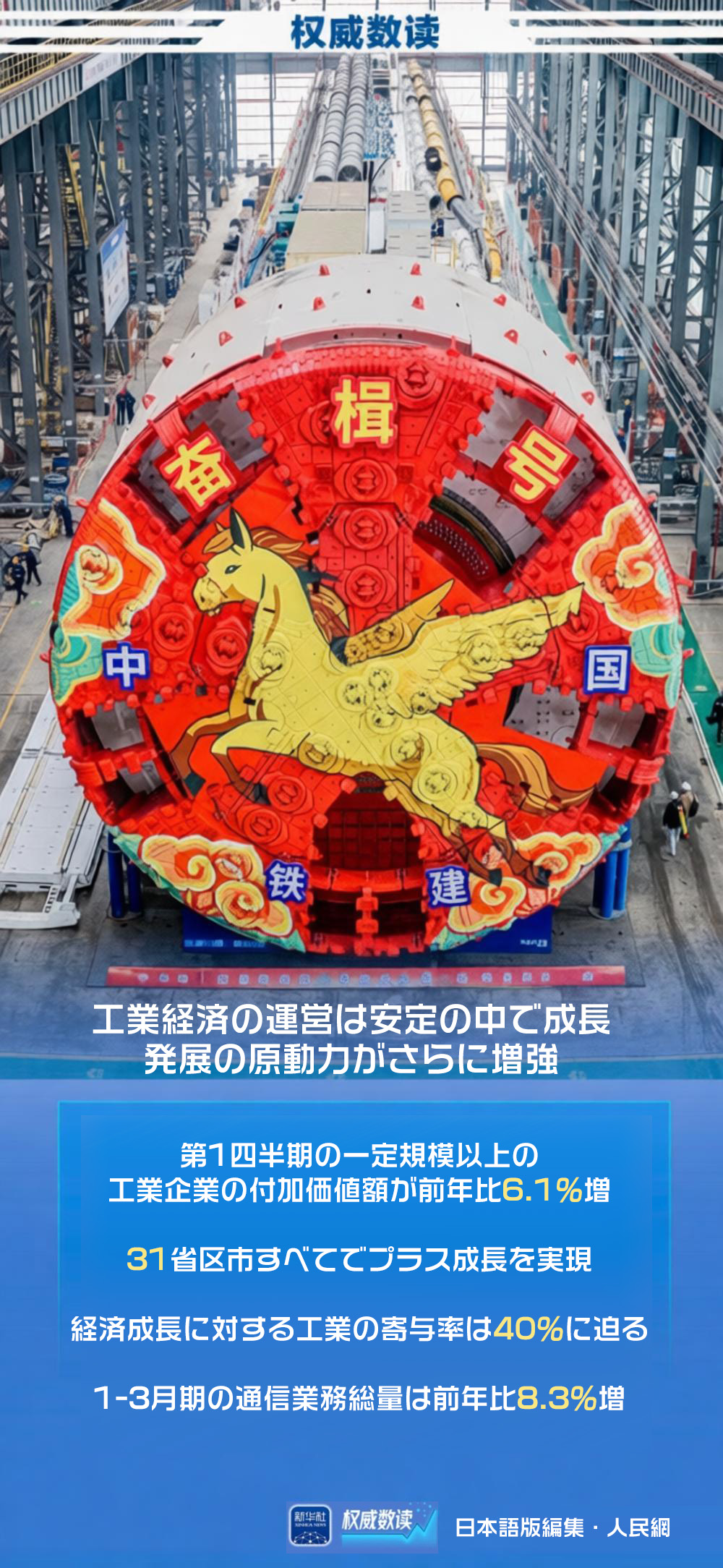 関連データによると、26年の工業・情報化の発展は好調な滑り出しとなった。第1四半期、全国の一定規模以上の工業企業(年売上高2000万元以上の企業)の付加価値額は前年同期比で6.1%増加し、31省・自治区・直轄市すべてでプラス成長を実現し、経済成長に対する工業の寄与率が40%に迫った。ハイテク製造業の成長が著しく、一定規模以上のハイテク製造企業の付加価値額は同12.5%増加した。通信業務の総量は同8.3%増加だった。外部環境の不確実性が高まったが、中国の産業システムは整っており、産業のレジリエンスは高く、市場の規模は大きく、工業経済の安定好転という基調はこれからも変わらないとみられる。