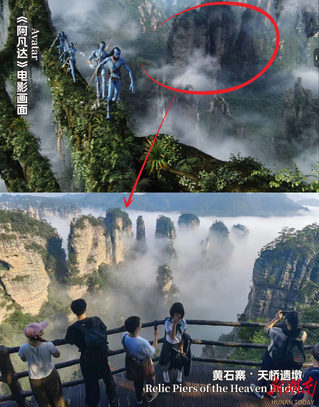 これらのロケ地はそれぞれに風情があり、その独特な張家界の地貌は、大自然が生み出した入神のわざの傑作であり、『アバター』シリーズの幻想的景観の現実的原型でもある。各場所でパンドラ星の古典的なイメージを見つけることができ、映画撮影の絶好の素材だ。