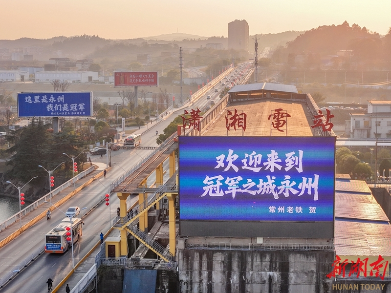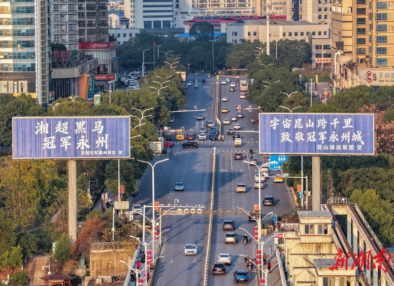 近日、永州市街地の広告塔や屋外電子スクリーンに、江蘇省のネットユーザーからの祝福メッセージがひときわ目立っている。連日、江蘇省の南京、蘇州、泰州、南通などのネットユーザーがこれらの広告塔やスクリーンの画面を独占し、永州チームの「湘超(湖南省サッカースーパーリーグ)」での優勝を祝う多彩な祝福メッセージを掲出している。多くのネットユーザーが注目し、「いいね」を寄せている。 郭立亮 撮影