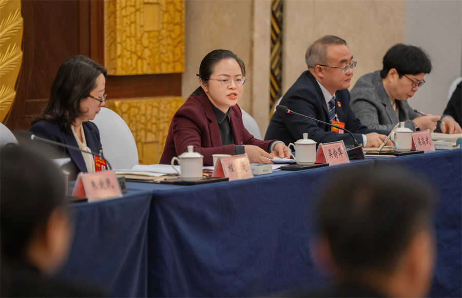 張家界市代表団の呉俞萍代表は、文化観光融合の高品質発展の推進について提言を行った。李健 撮影