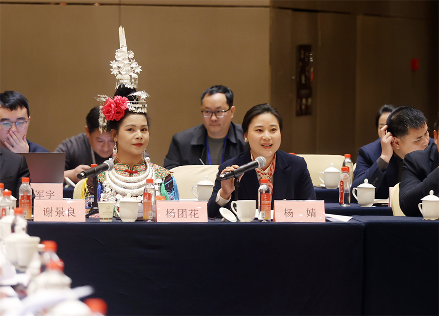 懐化市代表団の楊婧代表は、経営環境の最適化と湖南省商品の海外市場進出支援について提言を行った。 趙持 撮影