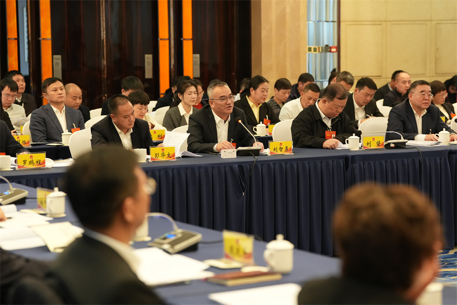 長沙市代表団の侯培林代表は、デジタル経済の優勢を活かし高品質発展に質的向上と効果的増進をもたらすことについて提言を行った。辜鵬博 撮影