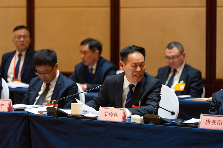 湘潭市代表団の朱修林代表は、「長株潭(長沙市、株洲市、湘潭市)一体化」の加速的推進について提言を行った。傅聡 撮影