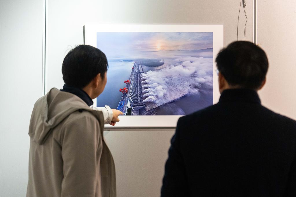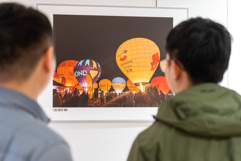 6日、湖南省文化館で写真作品を鑑賞する来館者。(長沙=新華社記者/陳思汗)