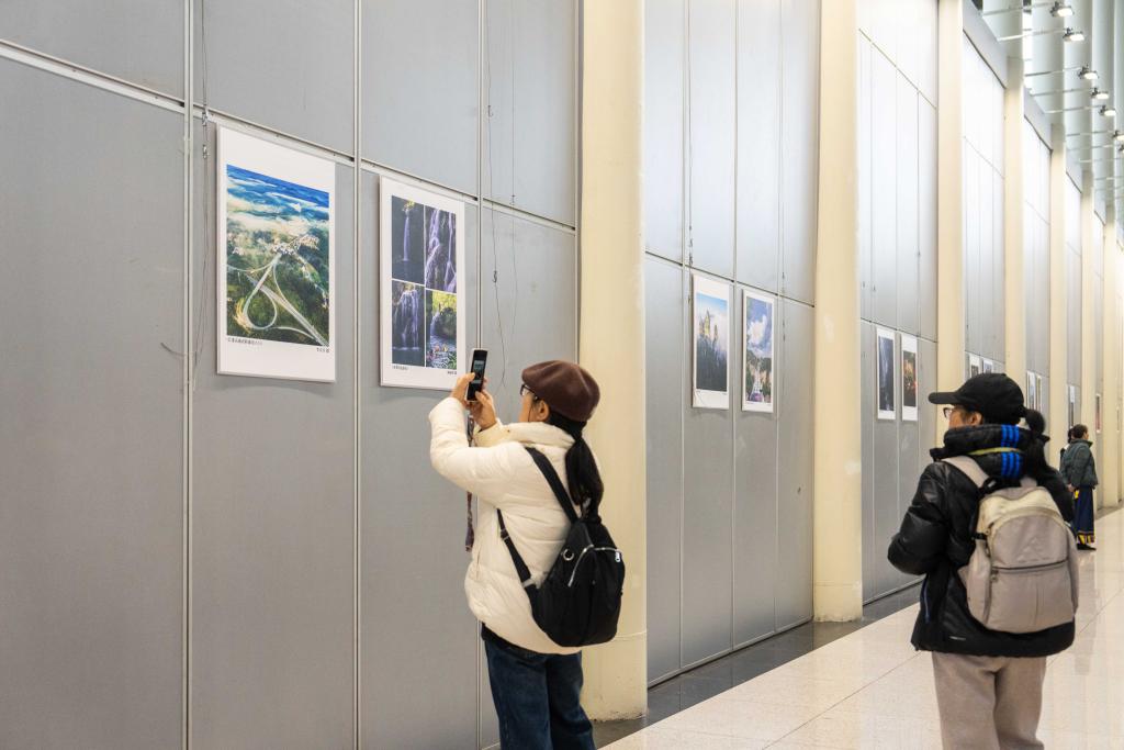 6日、湖南省文化館で写真作品を撮影する来館者。(長沙=新華社記者/陳思汗)