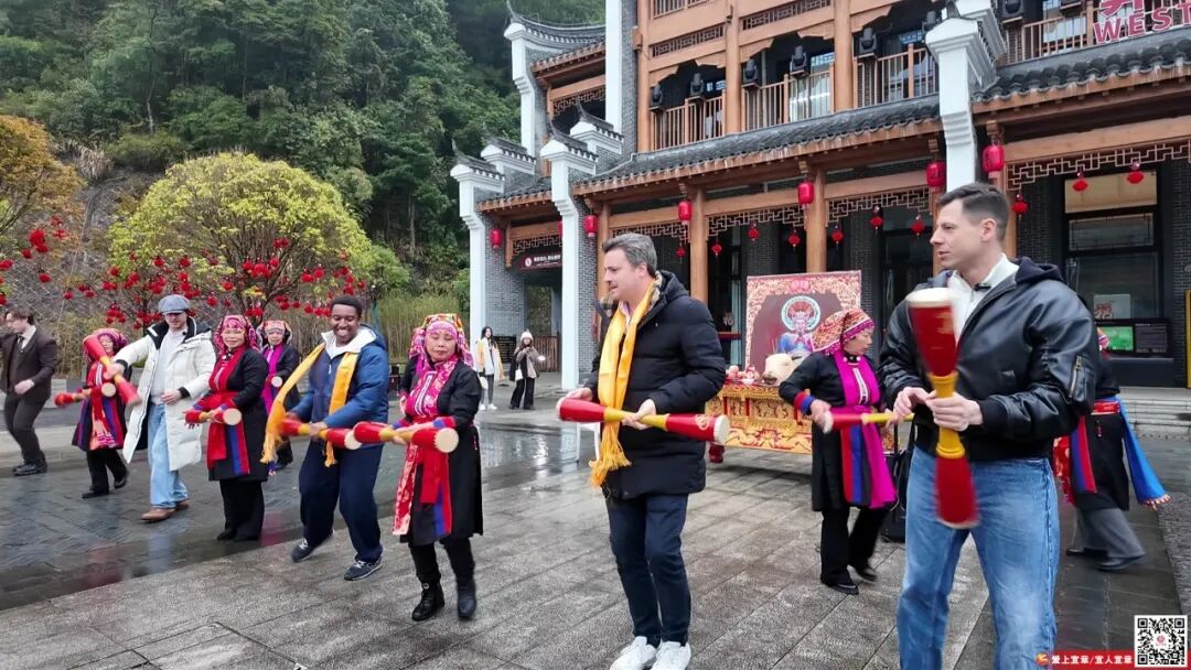 春節期間中、多くの外国人インフルエンサーはここで莽山の美しい山水風景を楽しみ、瑶族の祭祀儀式や竹竿踊りなどの民俗文化活動を体験し、温泉に入り、鍾乳洞レストラ ンの美食を味わい、そしてそれらをショート動画にしてネットプラットフォームで発信した。