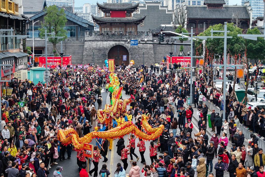 【新華社張家界3月5日】中国湖南省張家界市で3日、ランタン祭り「2026年張家界元宵灯会」が開幕し、数十の民間芸能団体が市内を練り歩いた。民族文化の趣が祭りを彩り、訪れた市民や観光客は華やいだ雰囲気を楽しんだ。