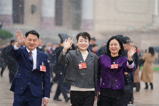 3月4日午前、第14期全国人民代表大会第4回会議の予備会議終了後、湖南代表団の代表たちが会場を後にした。彼らは今回の大会に大きな期待を寄せている。 易昂、劉尚文、田超、唐俊、傅聪 撮影