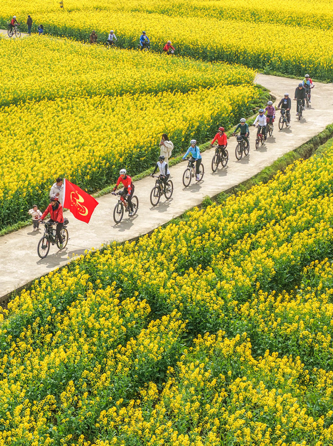 このほど、道県祥霖鋪鎮両河口村で、サイクリング愛好者が菜の花畑の中を走っていた。 蒋克青 撮影 訳者: 王冰菁 校閲者: 瞿莎蔚 記事出処: 湖南省政府中国語ポータルサイト