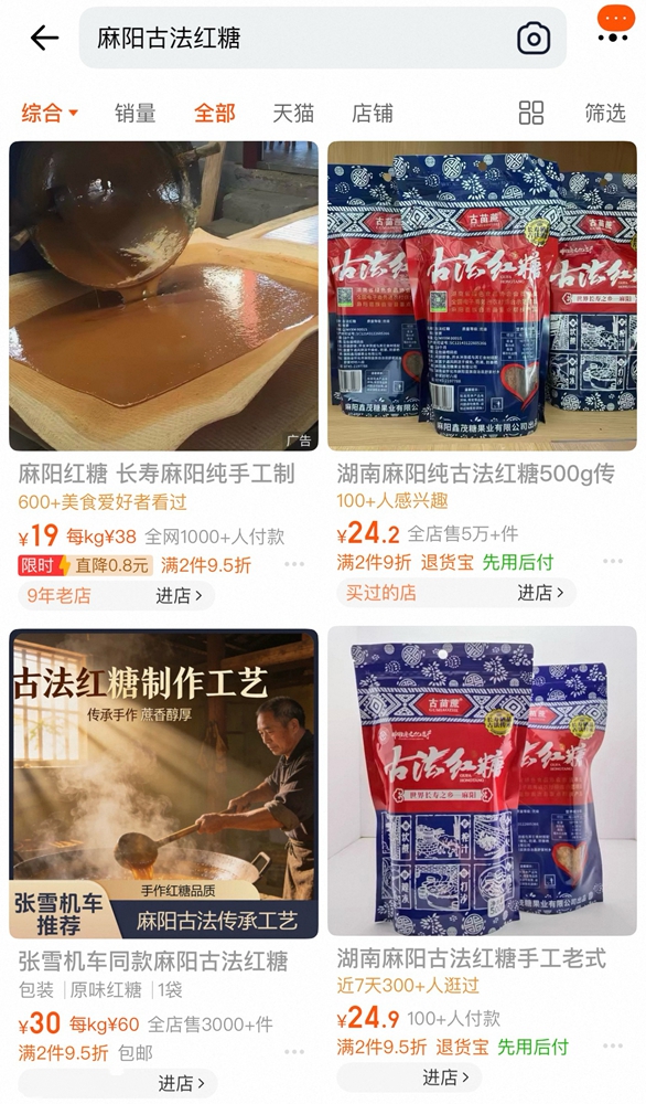 ECプラットフォームのデータによると、ある取り扱い店舗では、麻陽古法紅糖の購入者が24時間で400人を超えたという。