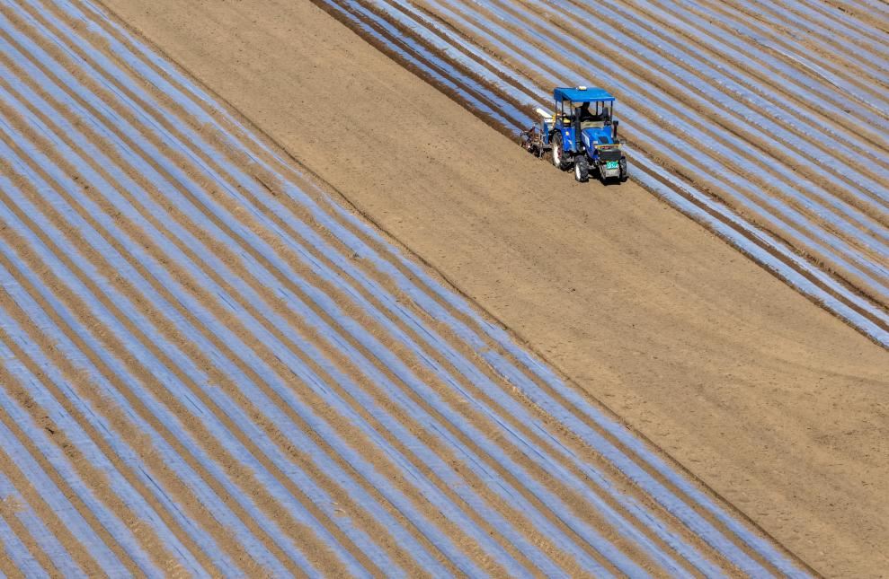 【新華社北京4月14日】中国各地で気温上昇に伴い、種まき作業が本格化している。田畑には活気あふれる光景が広がっている。