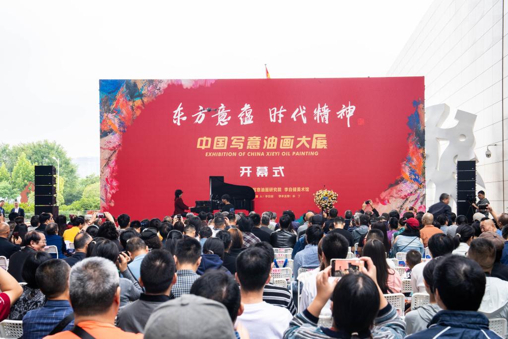 21日、李自健美術館「東方意蘊・時代精神-中国写意油画大展」の開幕式。(長沙=新華社記者/陳思汗)