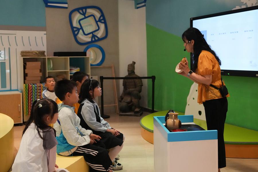 4日、長沙博物館の子ども向けミニ展覧会で、文化財について学ぶ子どもたち。(長沙=新華社記者/薛宇舸)